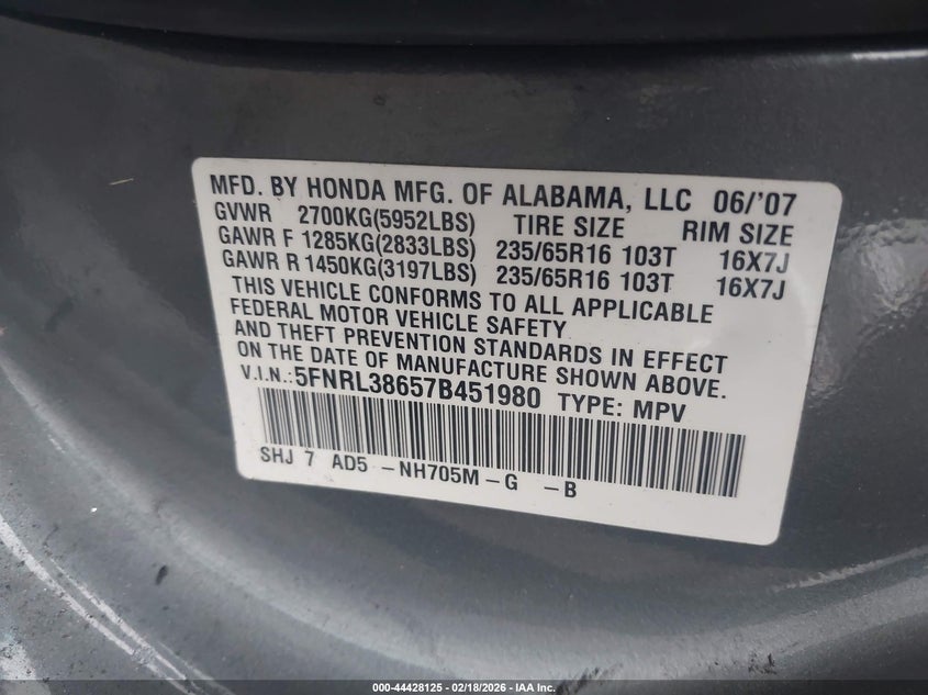 • 5FNRL38657B451980