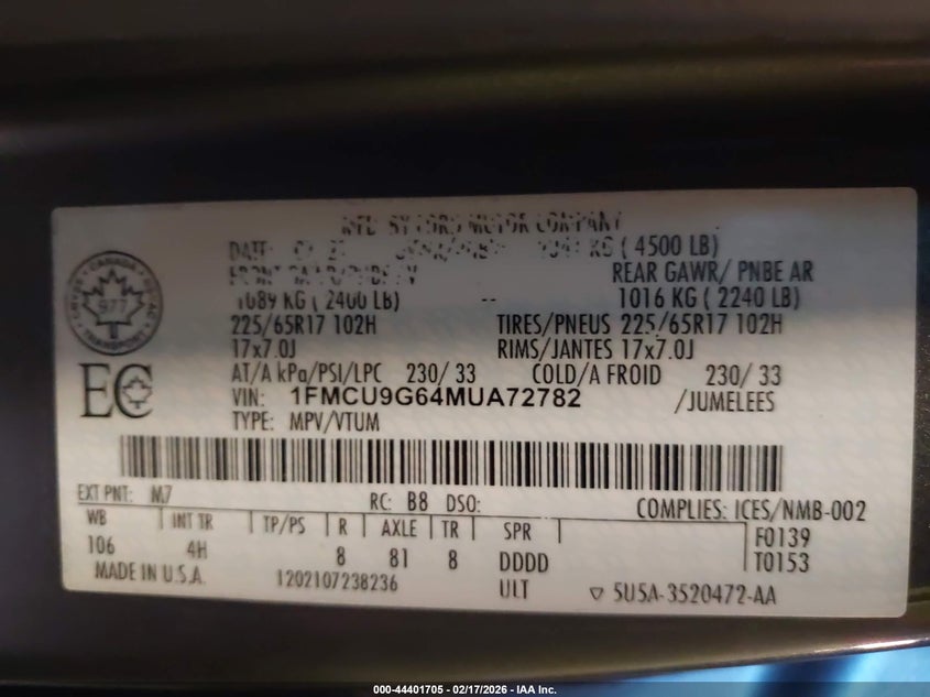 • 1FMCU9G64MUA72782