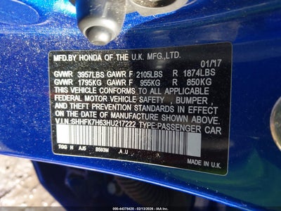 • SHHFK7H63HU217222