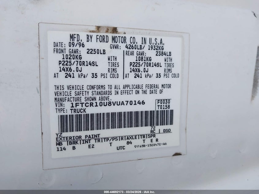 • 1FTCR10U8VUA70146
