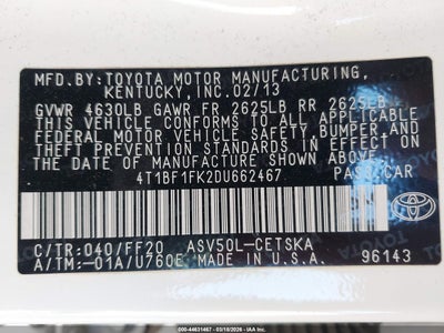 • 4T1BF1FK2DU662467