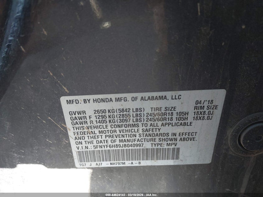 • 5FNYF6H89JB040997