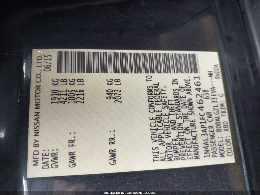 2015 NISSAN ALTIMA 2.5 S for Sale in Ogden, UT