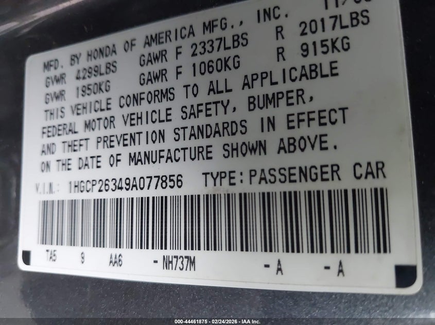 • 1HGCP26349A077856