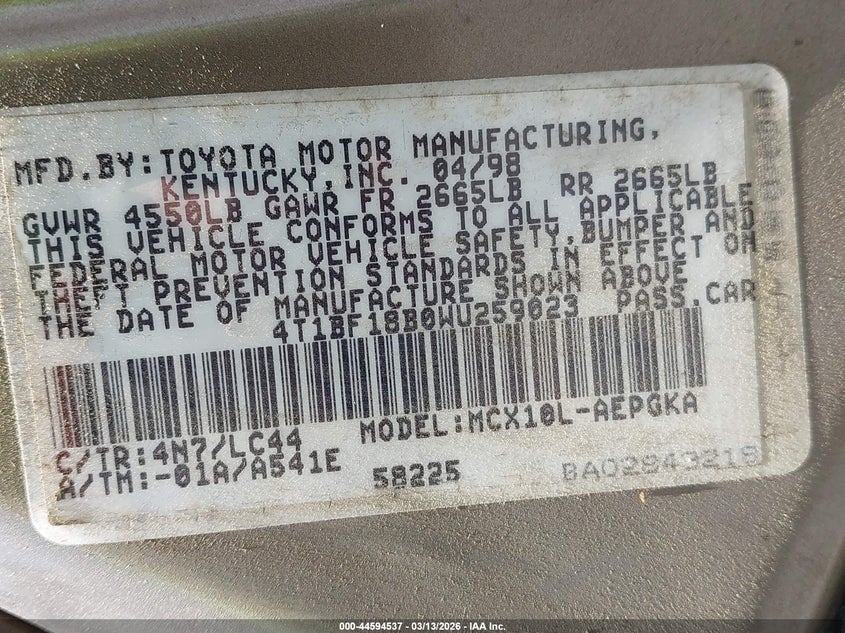 • 4T1BF18B0WU259023