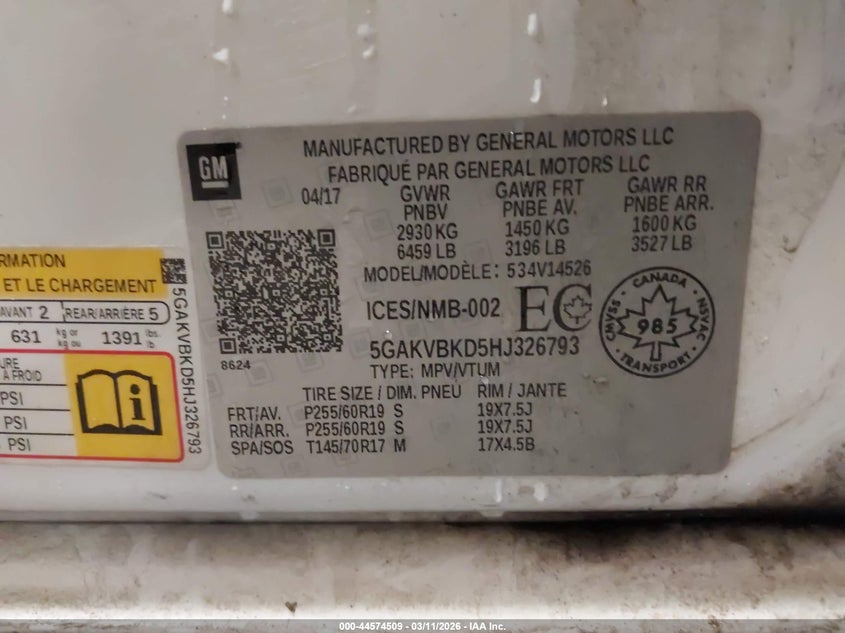 • 5GAKVBKD5HJ326793