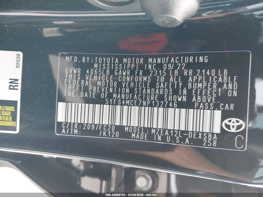 • 5YFS4MCE7NP132746