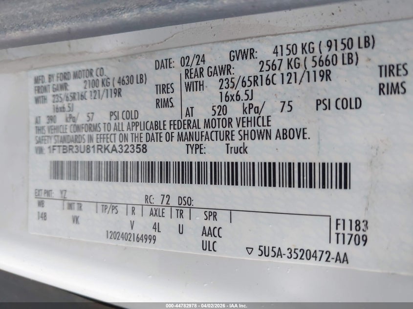 • 1FTBR3U81RKA32358