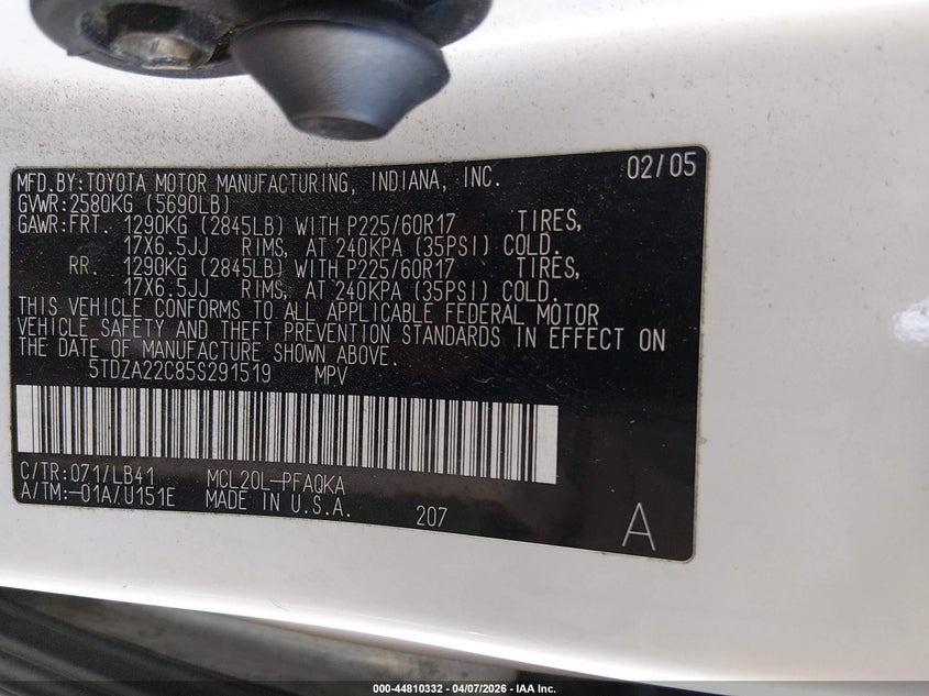 • 5TDZA22C85S291519