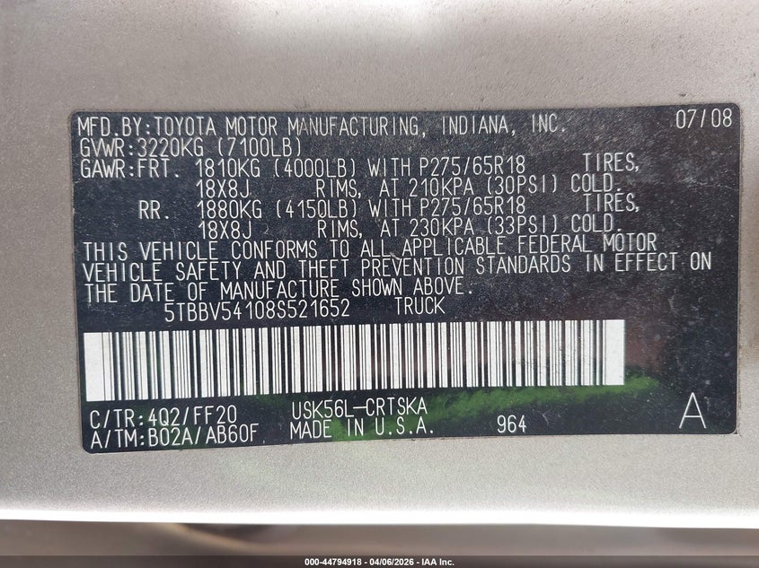 • 5TBBV54108S521652