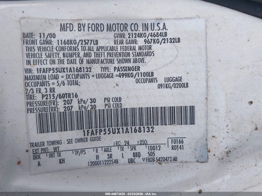 • 1FAFP55UX1A168132