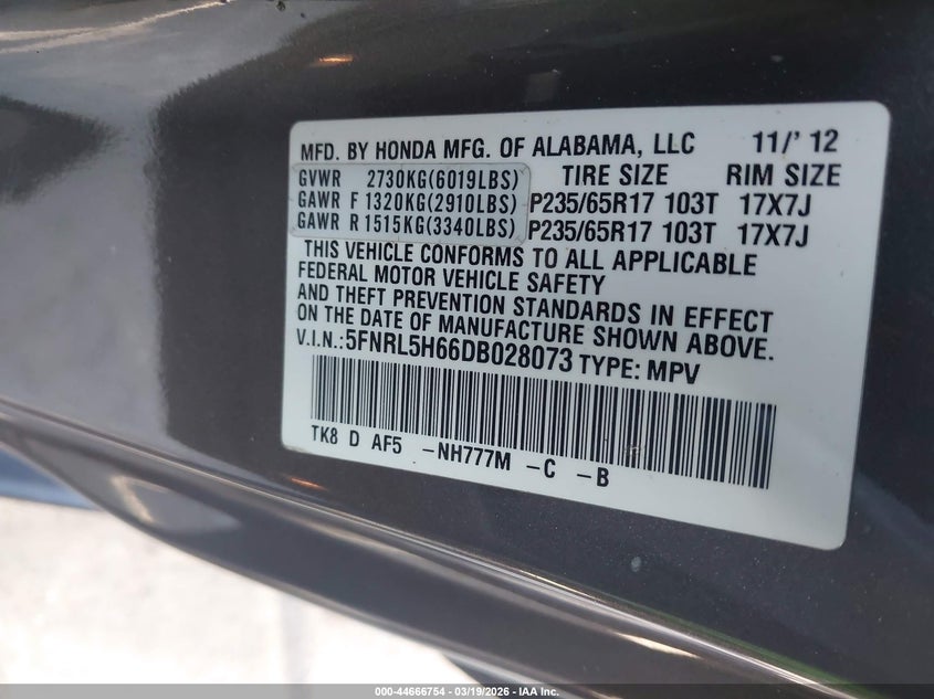 • 5FNRL5H66DB028073