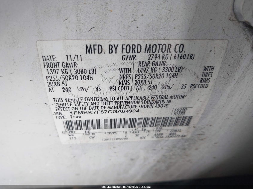 • 1FMHK7F87CGA64904