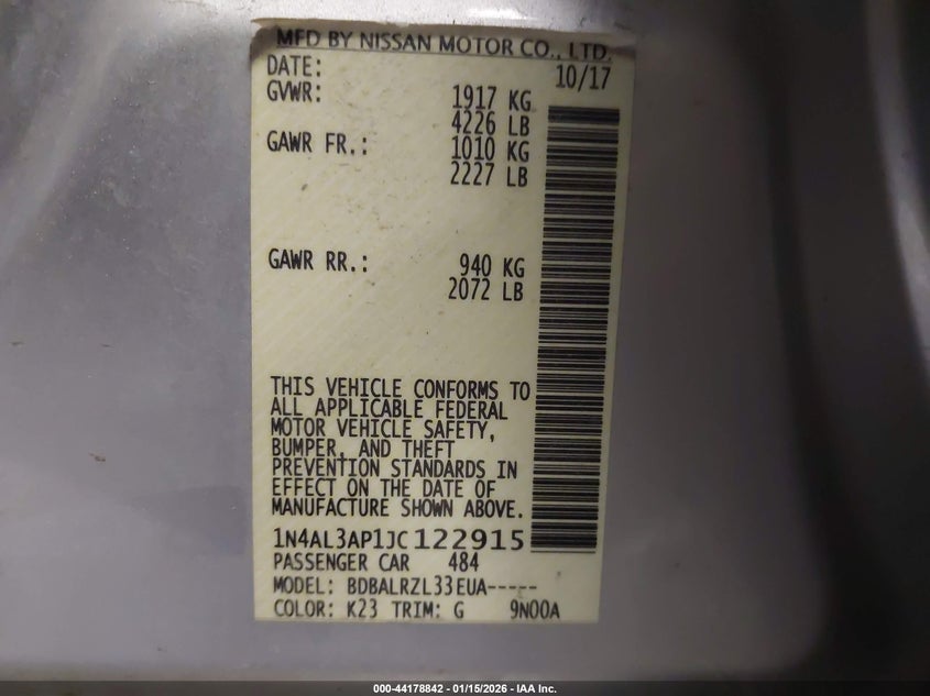 2018 NISSAN ALTIMA 2.5 SL for Sale in Byron Center, MI