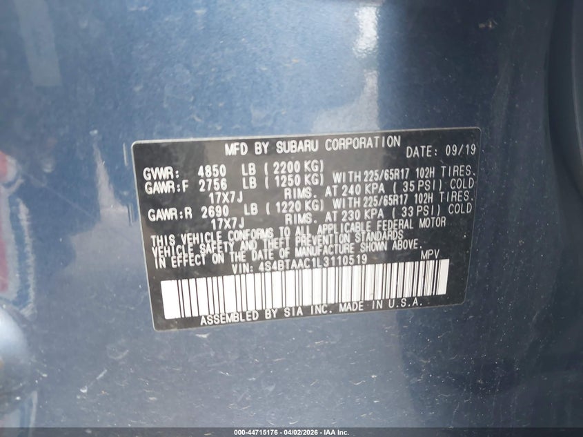 • 4S4BTAAC1L3110519