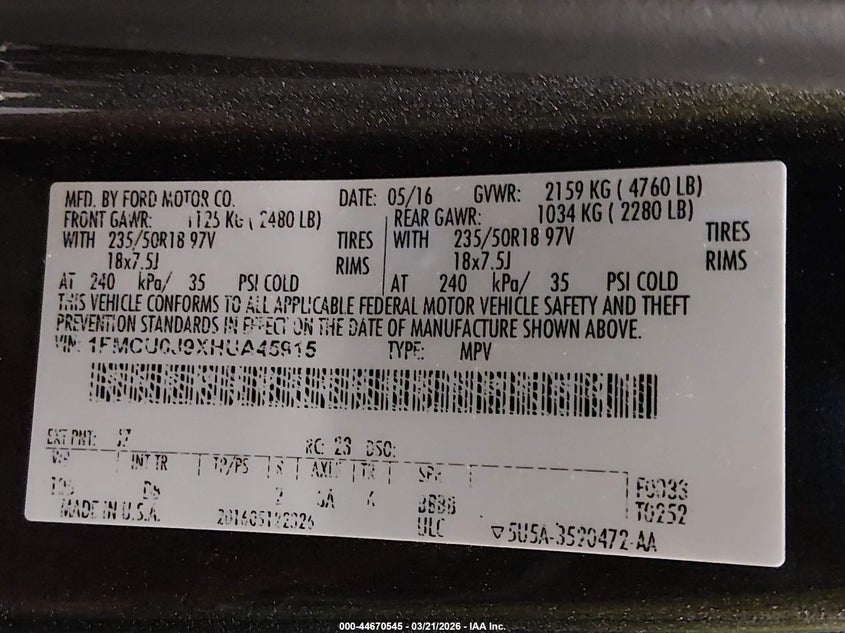 • 1FMCU0J9XHUA45915
