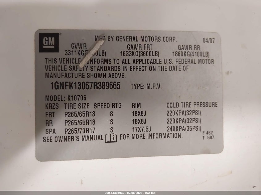 • 1GNFK13067R389665