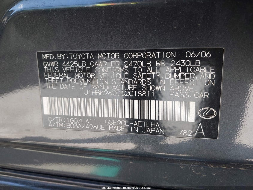 • JTHBK262062018811
