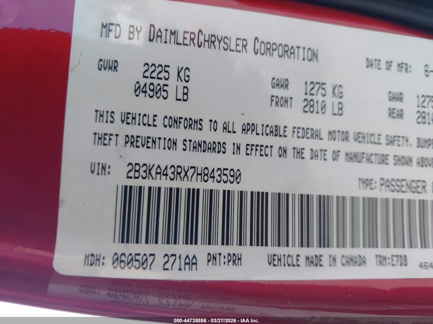 • 2B3KA43RX7H843590