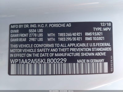 • WP1AA2A55KLB00229