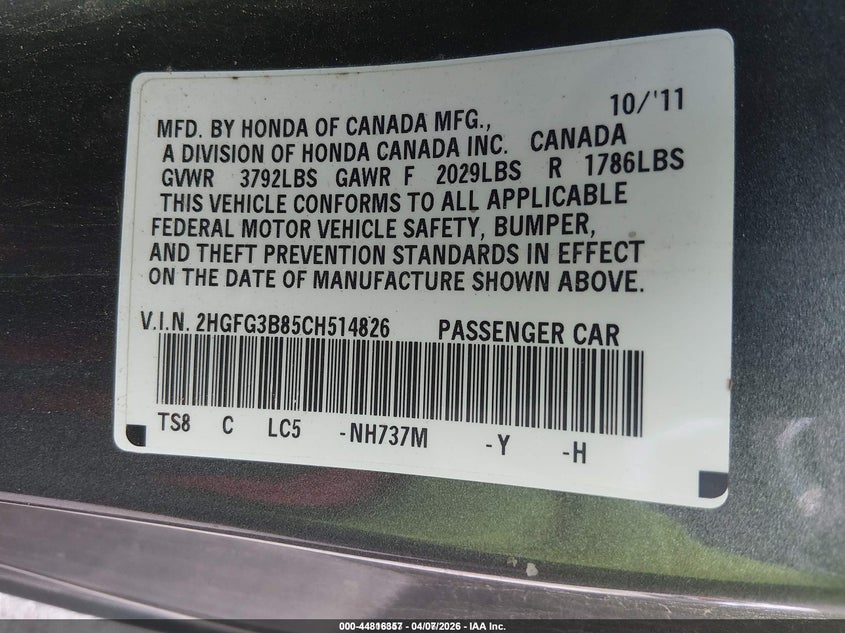 • 2HGFG3B85CH514826