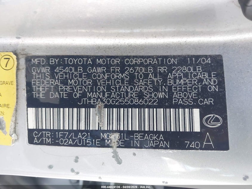 • JTHBA30G255086022