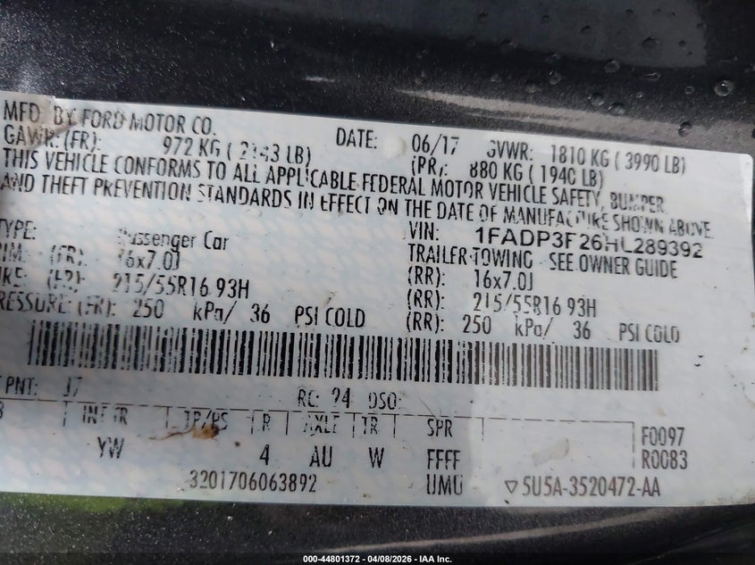 • 1FADP3F26HL289392