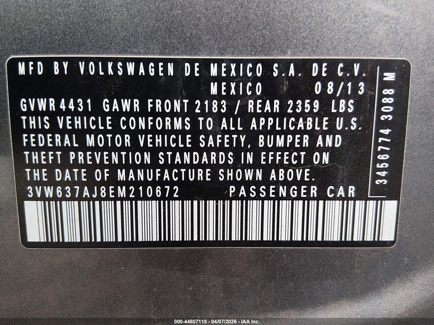• 3VW637AJ8EM210672