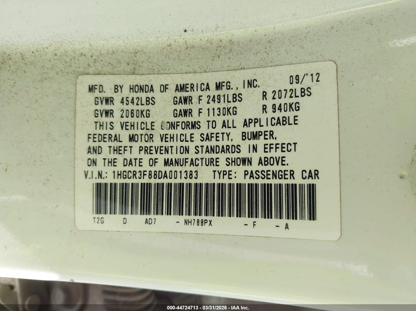 • 1HGCR3F88DA001383