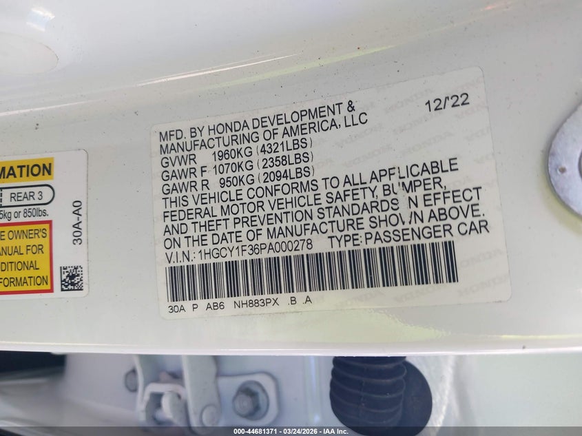 • 1HGCY1F36PA000278