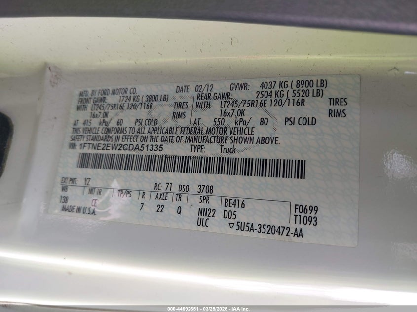 • 1FTNE2EW2CDA51335