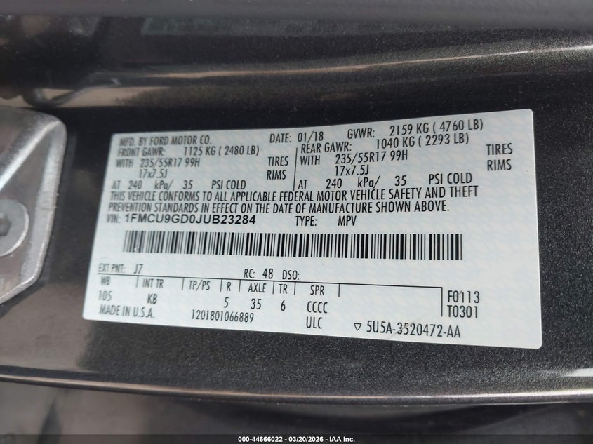 • 1FMCU9GD0JUB23284