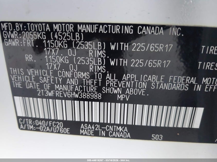 • 2T3WFREV6HW388988