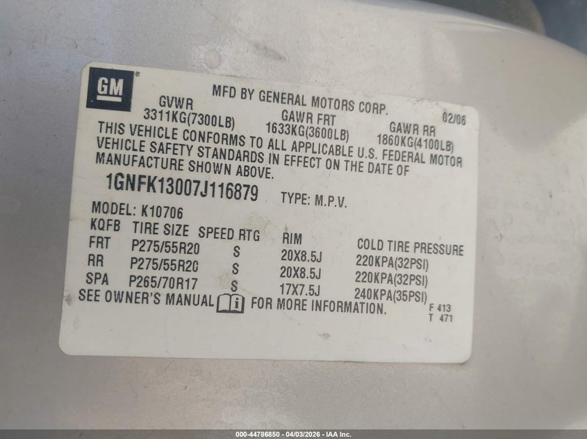 • 1GNFK13007J116879