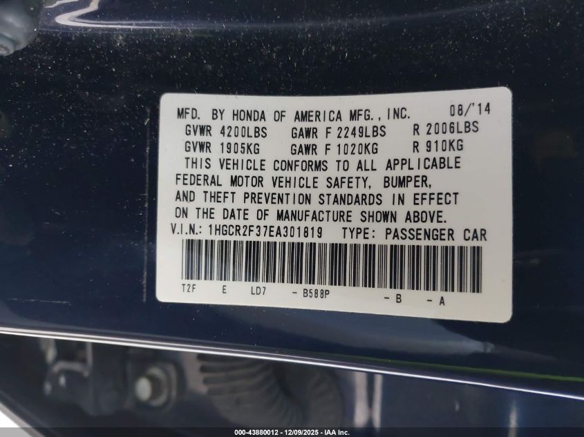 • 1HGCR2F37EA301819