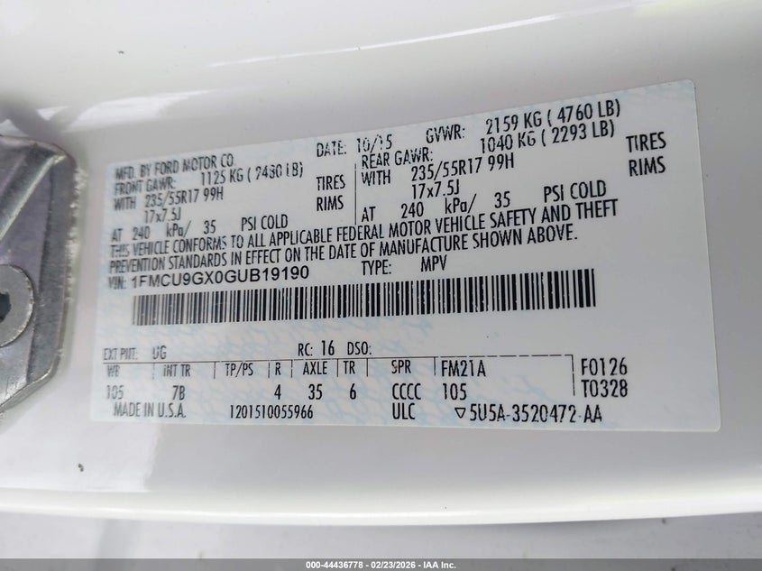 • 1FMCU9GX0GUB19190