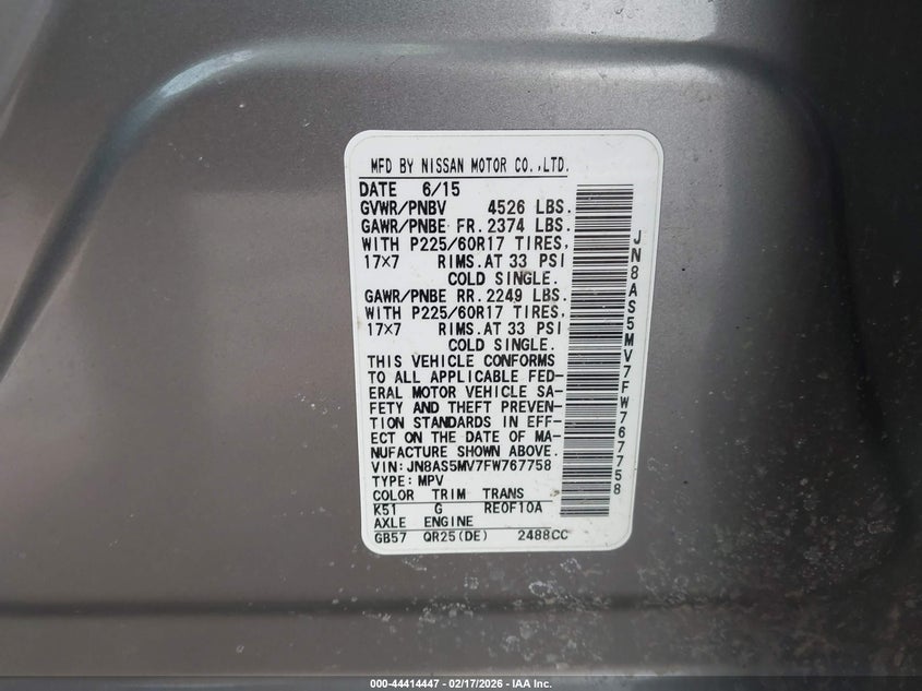 • JN8AS5MV7FW767758