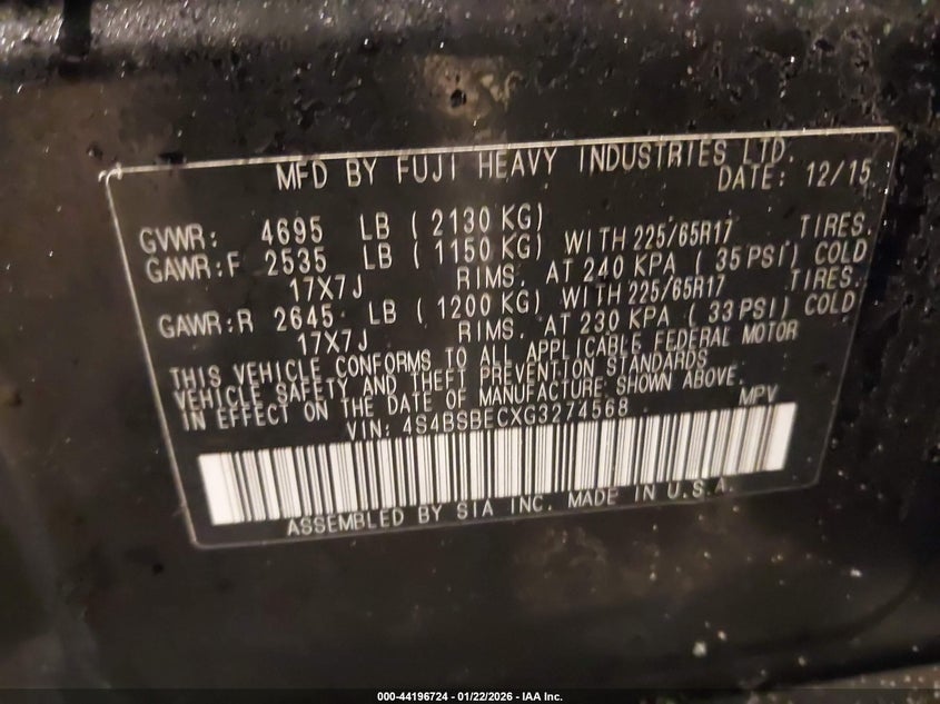 • 4S4BSBECXG3274568