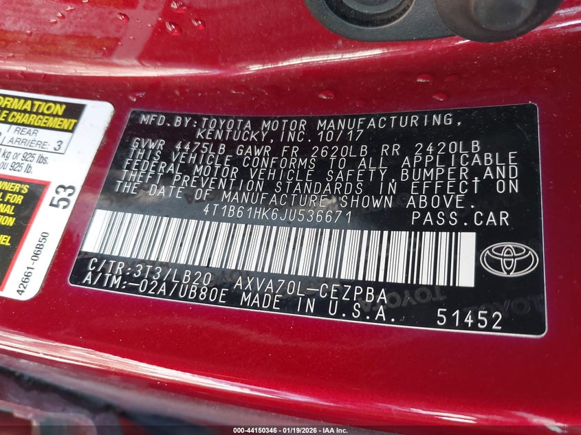 • 4T1B61HK6JU536671