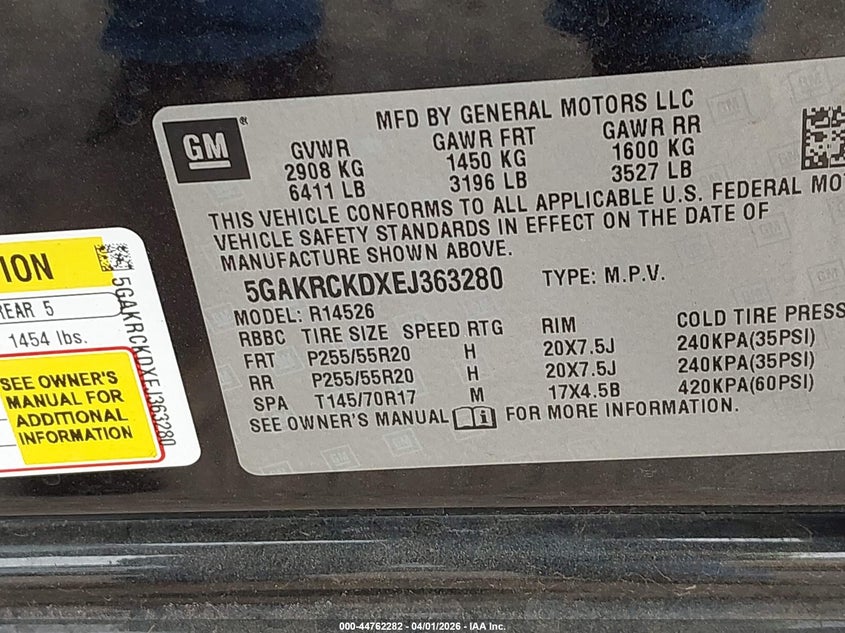 • 5GAKRCKDXEJ363280