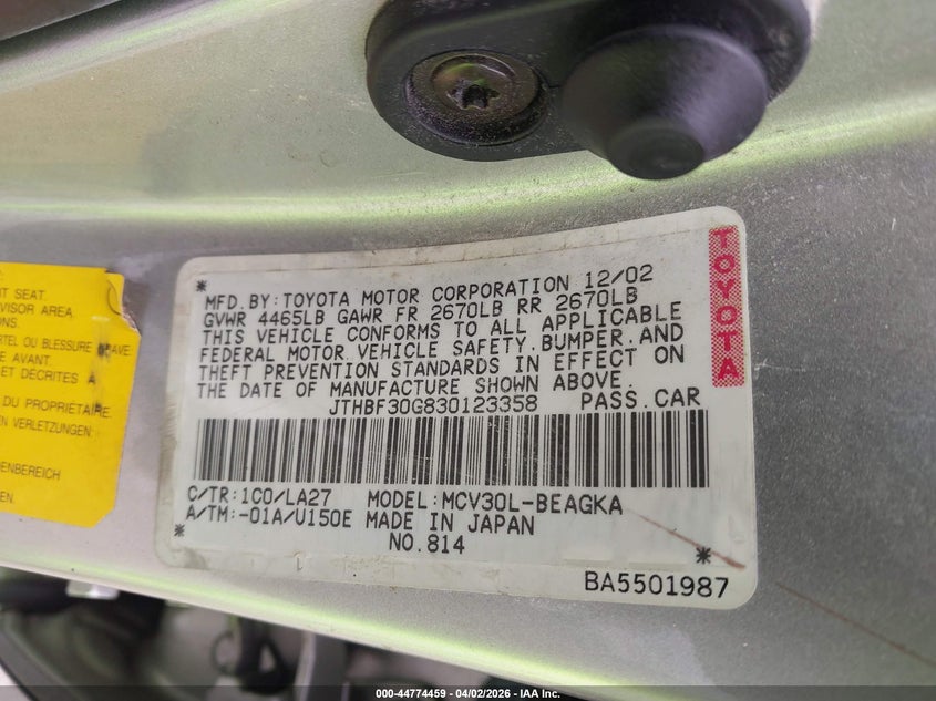 • JTHBF30G830123358