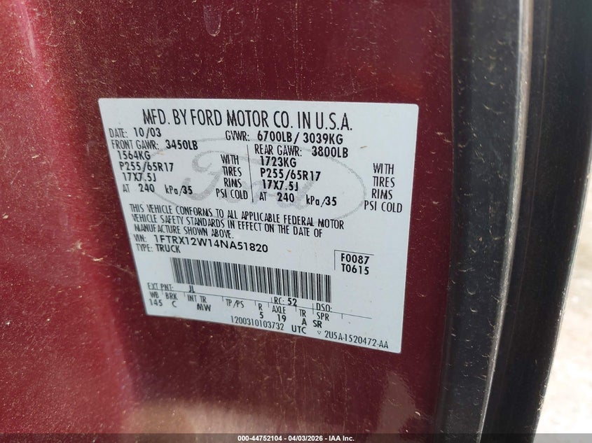 • 1FTRX12W14NA51820