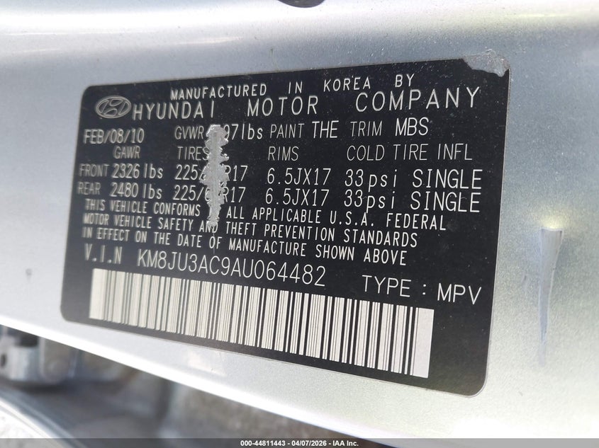 • KM8JU3AC9AU064482