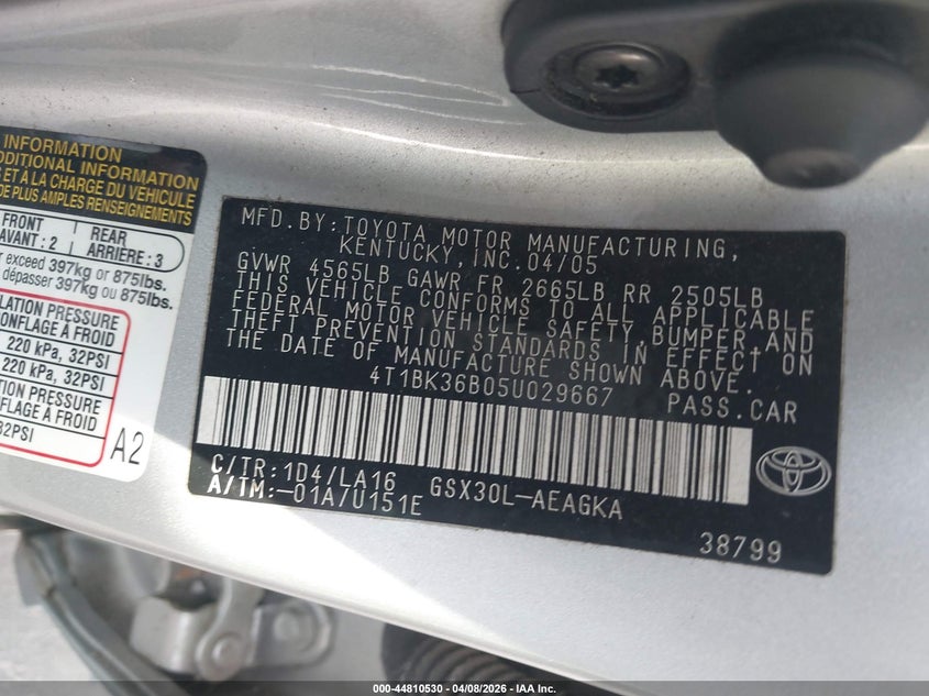 • 4T1BK36B05U029667