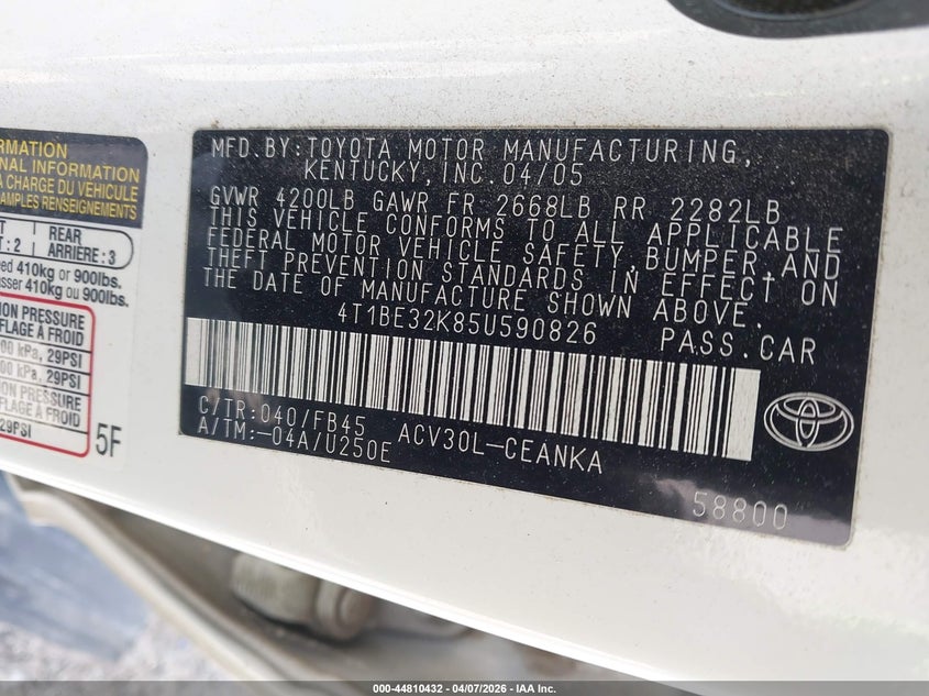 • 4T1BE32K85U590826