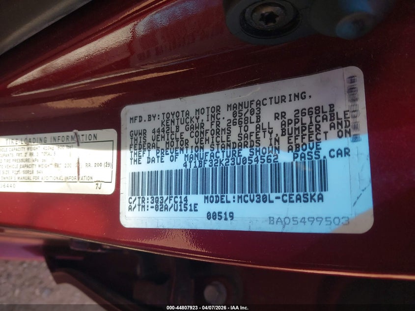 • 4T1BF32K23U054562