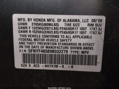 • 5FNYF48589B032279