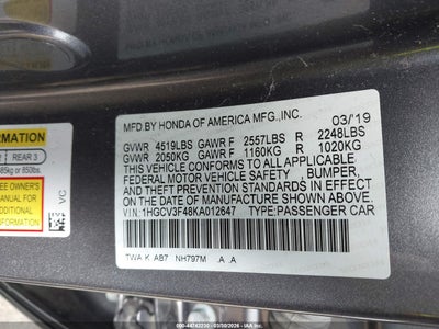 2019 HONDA ACCORD HYBRID EX for Sale in Sussex, WI