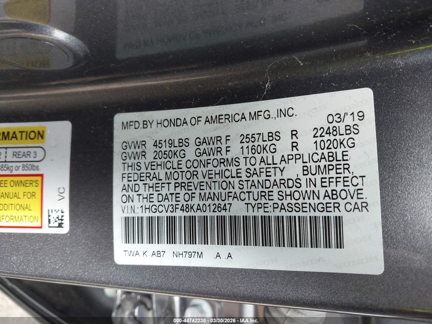 • 1HGCV3F48KA012647