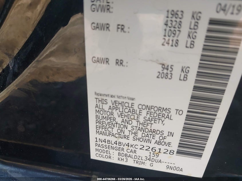 • 1N4BL4BV4KC226128